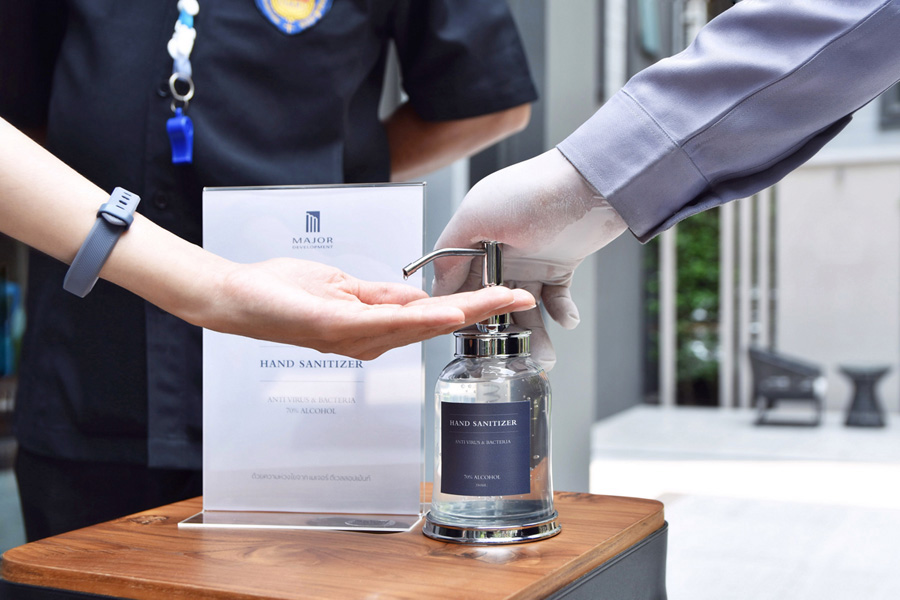 มีการจัดเตรียมอุปกรณ์สำหรับทำความสะอาด อาทิ เจลแอลกอฮอล์ และเครื่องพ่นแอลกอฮอล์ระบบอัตโนมัติ กระจายอยู่บริเวณพื้นที่ส่วนกลาง ไม่ว่าจะเป็น ทางเข้าโครงการ บริเวณล็อบบี้ หน้าลิฟต์ สำหรับฆ่าเชื่อโรคที่อาจจะติดอยู่ที่มือกรณีที่ไปหยิบจับหรือสัมผัสจุดที่มีความเสี่ยงต่อการติดเชื่อโรค เพื่อป้องกันการกระจายเชื่อไปยังพื้นที่อื่นๆ ภายในโครงการ นอกจากนี้ยังจัดให้มีการฉีดพ่นยาฆ่าเชื้อบริเวณพื้นที่ส่วนกลางอย่างสม่ำเสมอ