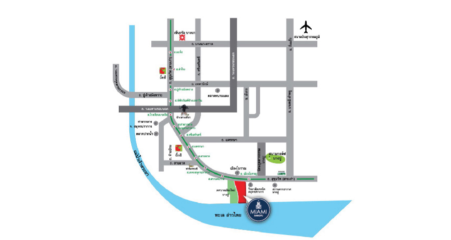 เดอะ ไมอามี่ บางปู (The Miami Bangpu) คอนโดตากอากาศพร้อมอยู่ติดถนนใหญ่ ติดทะเล ทำเลตรงข้ามเมืองโบราณ ห่างจากรถไฟฟ้า BTS ส่วนต่อขยายเพียง 100 เมตร ด้านหน้าโครงการเป็น Community Mall แหล่งช้อปปิ้งที่ใหญ่ที่สุดในสมุทรปราการ ด้านหลังติดทะเล เดินทางสะดวก อยู่ไม่ไกลจากกรุงเทพฯ