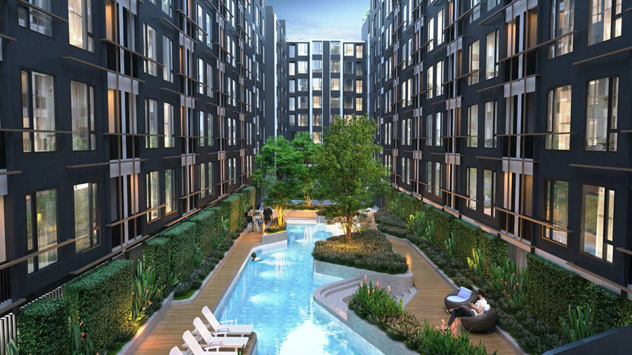 คอนโด Low Rise 8 ชั้น 10 อาคาร 2,461 ยูนิต ห้องพักอาศัยแบบ สตูดิโอ เริ่มต้น 22 ตร.ม. พร้อมส่วนกลาง สวนส่วนกลาง, ระบบลิฟท์ล็อคชั้น, ลานนํ้าพุ, WIFI Internet ในพื้นที่ส่วนกลาง, เข้า-ออก โครงการโดย Access Card, กล้องวงจรปิด, เจ้าหน้าที่รักษาความปลอดภัย 24 ชม.