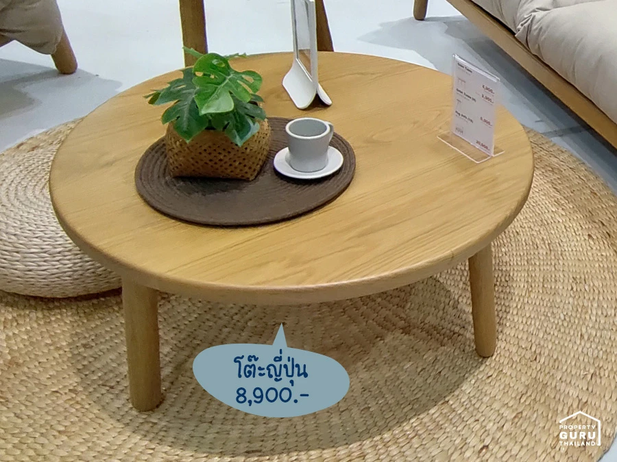โต๊ะญี่ปุ่นจากร้าน Hari Ora ใช้เป็นโต๊ะรับแขกก็ได้ค่ะ แบบกลมๆ นี่ราคา 8,900 บาท