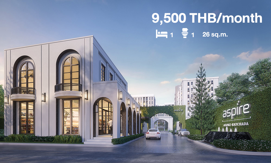 แอสปาย อโศก-รัชดา (Aspire Asoke-Ratchada) 1 ห้องนอน 1 ห้องน้ำ 26 ตารางเมตร ราคาเช่า/เดือน 9,500 บาท ประกาศเช่าจาก hipflat คอนโดใกล้ที่ทำงานดีไซน์สวย อยู่แล้วรู้สึกเหมือนอยู่บ้าน