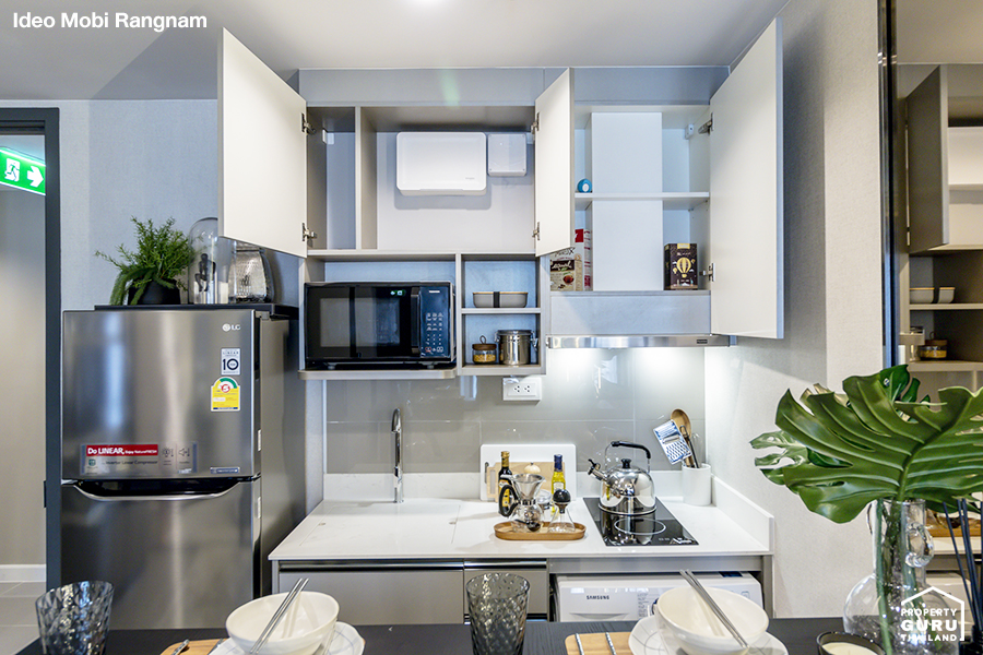 อะพาร์ตเมนต์หรือหอพักบางแห่งไม่สามารถทำอาหารได้เลยค่ะ เพราะกลิ่นและเสียงเป็นการรบกวนห้องอื่นรวมถึงป้องกันการเกิดไฟไหม้ด้วย แต่คอนโดนั้นมีการวางโครงสร้างรวมถึงระบบการป้องกันอัคคีภัยที่ดี จึงสามารถทำอาหารได้ มีห้องครัวเป็นสัดส่วน คนที่ชอบทำอาหารก็น่าจะถูกใจกับการอยู่คอนโดมากกว่าค่ะ