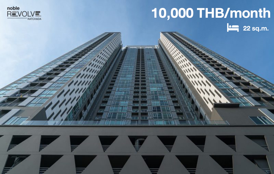 โนเบิล รีวอลฟ์ รัชดา (Noble Revolve Ratchada) สตูดิโอ 22 ตารางเมตร ราคาเช่า/เดือน 10,000 บาท ประกาศเช่าจาก propertyhub คอนโดสูงวิวสวย หน้าโครงการคือ MRT ศูนย์วัฒนธรรม และเยื้องกับเอสพละนาด รัชดา