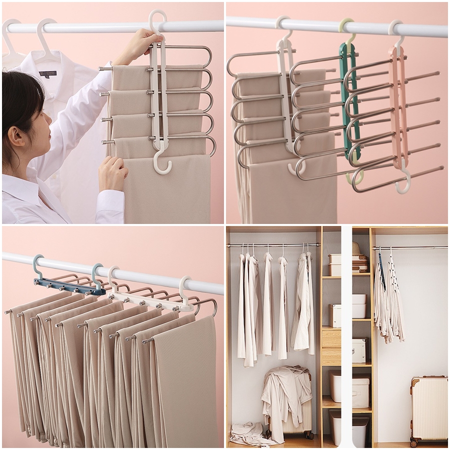 ลองเปลี่ยนไม้แขวนเสื้อแบบธรรมดามาใช้ไม้แขวนเสื้อมัลติฟังก์ชั่นที่ออกแบบมาในลักษณะไล่ระดับ สามารถเลือกแขวนเป็นแนวนอนหรือจะแขวนแบบแนวตั้งก็ได้ ถือเป็นตัวช่วยที่ดีทำให้สามารถแขวนเสื้อหรือกางเกงได้จำนวนมากขึ้น ประหยัดพื้นที่ใช้สอย และยังช่วยจัดหมวดหมู่ไปในตัว