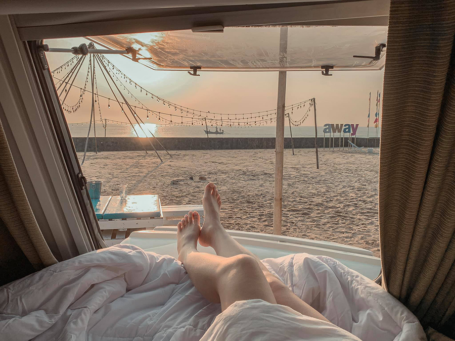 สายแคมป์ต้องไม่พลาด มาแคมป์ปิ้งกับรถบ้านที่ริมหาดชะอำ เปลี่ยนบรรยากาศการมาเที่ยวให้ชิคกว่าที่เคย สามารถนั่งชมวิวพระอาทิตย์ตกจนลับตาไป ติดกันเป็น Tumlay Cafe & Bar สั่งเครื่องดื่มมาจิบ เม้าท์กับเพื่อนทั้งคืนได้เลย! ราคารถแบบ Beach front วันธรรมดา 2,500 บาท