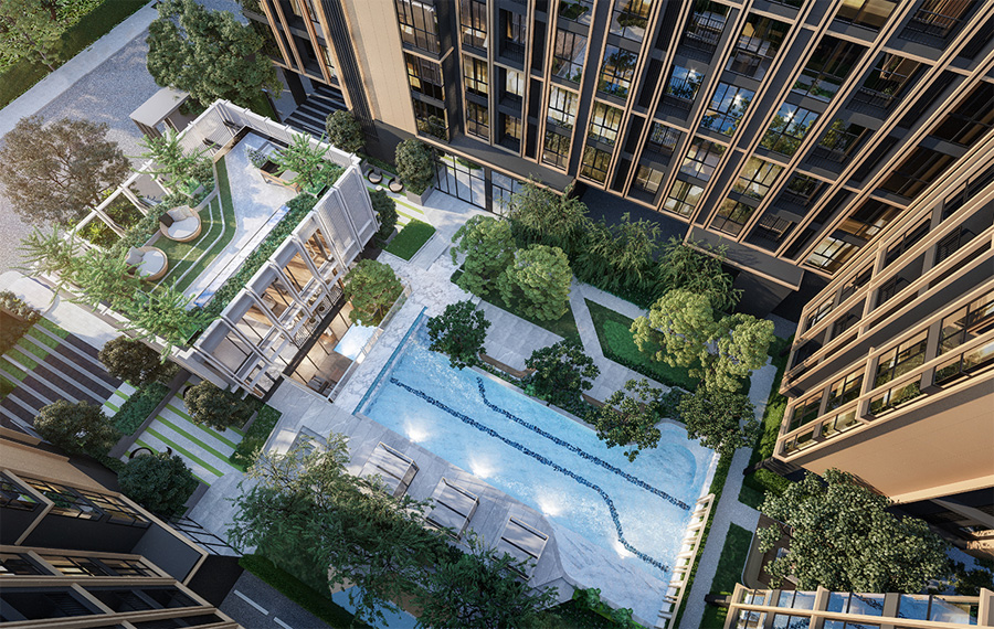 พื้นที่ส่วนกลางที่ดีควรมีความหลากหลาย จัดสรรพื้นที่ได้ลงตัวและเพียงพอกับสัดส่วนของจำนวนผู้อยู่อาศัยในโครงการ ซึ่งจุดนี้คอนโดแบบ High rise ที่เป็นโครงการขนาดใหญ่ก็จะได้เปรียบกว่าเต็มๆ เพราะมีพื้นที่ใช้สอยภายในโครงการให้พัฒนามากกว่า ทำให้สามารถออกแบบพื้นที่ส่วนกลางได้หลากหลายกว่าโครงการแบบ Low rise ช่วยลดการกระจุกตัวของจำนวนผู้ใช้งานได้ดี และยังเข้ากับสถานการณ์ปัจจุบันที่ต้องคำนึงถึง Social distancing เป็นสำคัญ