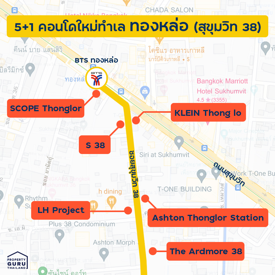 แถมอีก 1 โครงการที่ไม่ได้อยู่ในซอยสุขุมวิท 38 แต่อยู่ติดกับบันไดทางขึ้นรถไฟฟ้าสถานีทองหล่อฝั่งซอย 38 เลยค่ะ ใครที่ใช้บริการรถไฟฟ้าเป็นประจำก็จะเห็นพื้นที่ได้อย่างชัดเจนซึ่งโครงการนี้ก็คือ สโคป ทองหล่อ (Scope Thonglor) คอนโดมิเนียมซูเปอร์ลักชัวรีที่แบรนด์รังสรรค์ออกมาได้อย่างมีเอกลักษณ์ เหมือนเป็นผลงานศิลปะชิ้นหนึ่งที่มีคุณค่า ก่อนหน้านี้เปิดตัว 2 ทำเลคือ หลังสวนและพร้อมศรี และล่าสุดคือที่นี่ ทองหล่อ