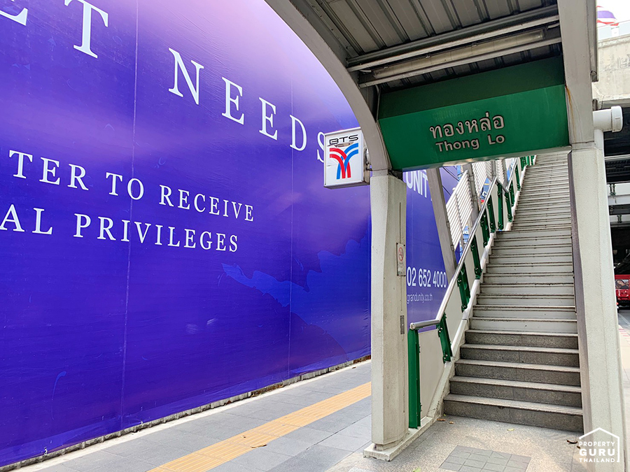 หน้าโครงการติดถนนสุขุมวิทและบันไดขึ้น-ลง BTS ทองหล่อ