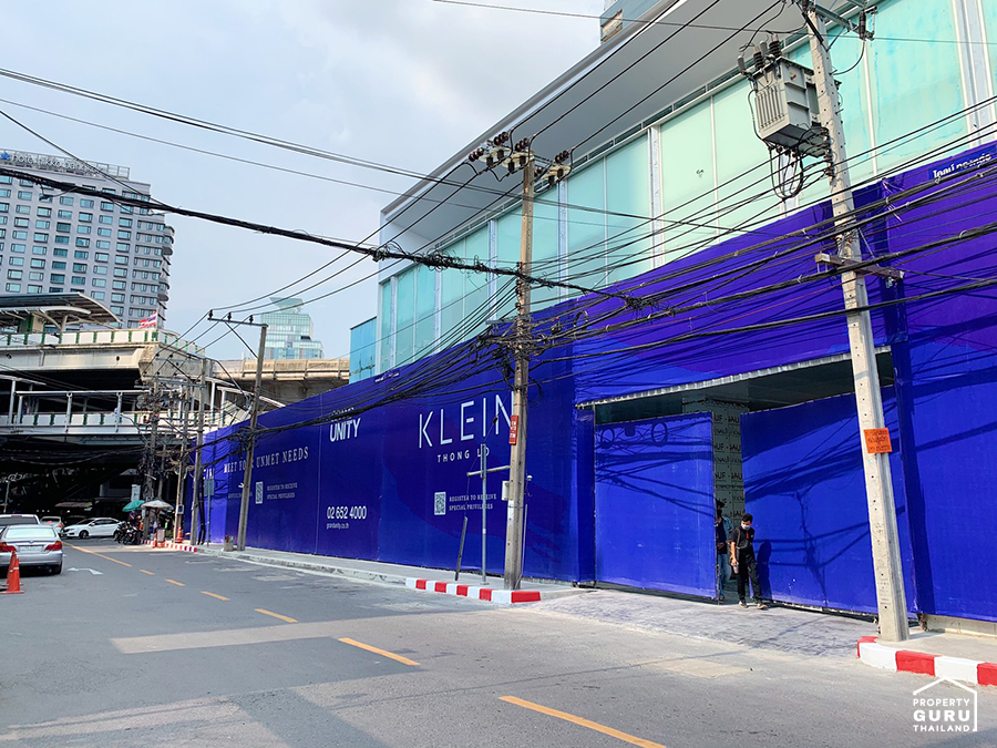 ลงบันได BTS สถานีทองหล่อออกมาโครงการแรกที่เจอเลยก็คือ KLEIN Thonglor (ไคลน์ ทองหล่อ) ของบริษัท แกรนด์ ยูนิตี้ ดิเวลล็อปเมนท์ จำกัด โดยพื้นที่ติดทั้งถนนสุขุมวิทหน้าบันไดรถไฟฟ้า และติดซอยสุขุมวิท 38 ปัจจุบันกำลังก่อสร้าง Sales Gallery จริงๆ แล้วโครงการนี้เปิดตัวไปเมื่อปี 2562 ในซอยทองหล่อระหว่างซอย 4 และ 5 ไม่แน่ใจว่าที่ดินผืนนี้จะปรับเปลี่ยนมาสร้าง KLEIN Thonglor หรือแท้จริงแล้วจะเป็นโครงการอื่นคงจะได้ทราบกันเร็วๆ นี้ค่ะ