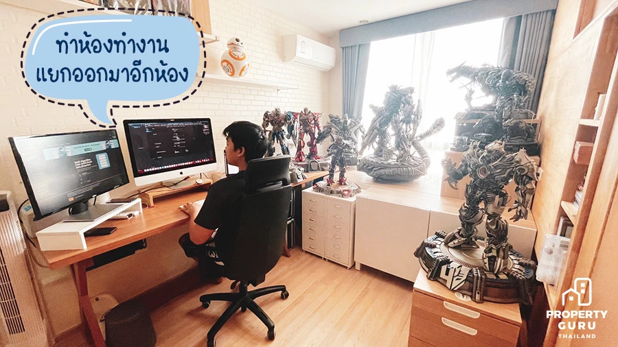 ในช่วงเวลาแบบนี้ หลายๆ คนก็ยังคง Work From Home กันอยู่ ซึ่งสำหรับชาวคอนโดแล้ว ก็อาจจะเป็นเรื่องที่ยุ่งยากอยู่เหมือนกันสำหรับการจะจัดหามุมนั่งทำงานได้อย่างลงตัว วันนี้เราจึงได้ไปสัมภาษณ์ผู้ที่อาศัยอยู่คอนโด อย่าง "คุณแบงค์" โปรแกรมเมอร์ที่ชื่นชอบการสะสมโมเดล ฟิกเกอร์ มาช่วยแชร์ประสบการณ์การ Work From Home ในคอนโด ว่ามีการจัดการยังไงให้นั่งทำงานในคอนโดได้สบายๆ และมีแรงบันดาลใจเหมือนกับนั่งทำงานอยู่ออฟฟิศเลยทีเดียว