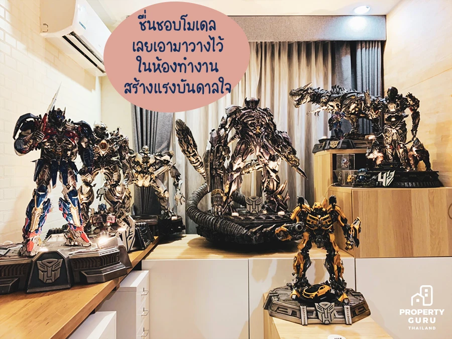 "เป็นห้องทำงานแยกออกจากห้องนั่งเล่น 1 ห้อง เพราะเป็นคนชอบโมเดล งานปั้น เลยเอาห้องนี้ไว้ทำงานและเก็บสะสมโมเดลที่เราชื่นชอบ"