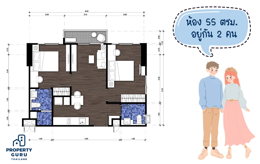 "ห้องขนาด 55 ตรม. อยู่ 2 คน อาจจะปัญหาเรื่องเวลานอนบ้าง เพราะแฟนเป็นพยาบาลลงเวรมาตอนเช้า ก็จะนอน เราเองก็ตื่นเช้าเพื่อมาทำงานในอีกห้องนึ่ง ซึ่งก็อาจจะมีเสียงรบกวนแฟนบ้างเวลาเขานอนกลางวันเพื่อไปขึ้นเวรเวลากลางคืน"