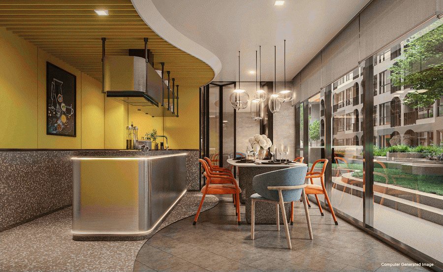จัดวางพื้นที่ห้องครัวเชื่อมต่อกับมุมทานอาหาร และโซนห้องนั่งเล่น