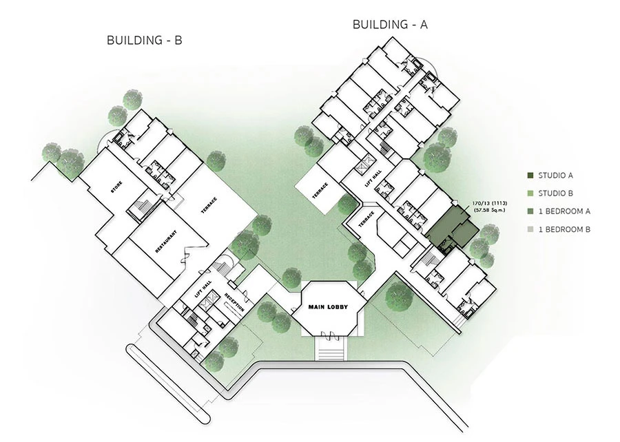 - Studio A ขนาด 36.9 - 44.4 ตร.ม.