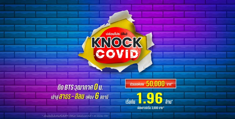 ปล่อยโปร (ลับ) Knock Covid ส่วนลดพิเศษ 50,000 บาท* เริ่มต้น 1.96 ล้านบาท ผ่อนดาวน์เริ่มต้น 3,9000 บาท* ลงทะเบียนรับสิทธิพิเศษที่นี่