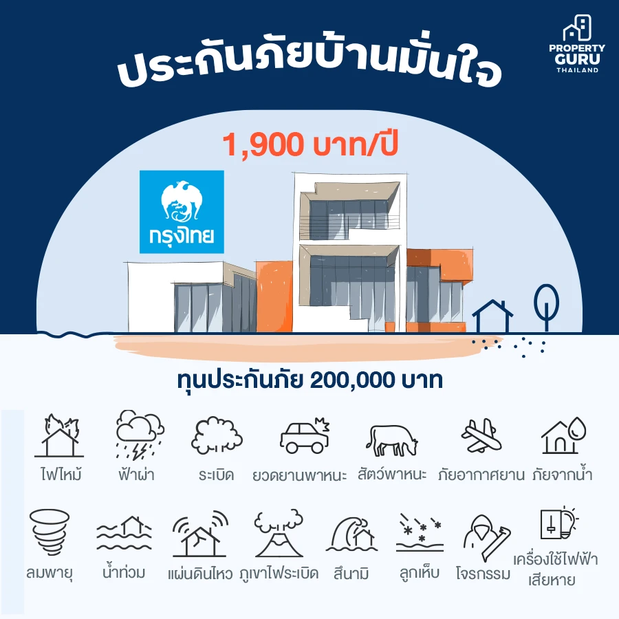 2. กรุงไทย ประกันภัยบ้านมั่นใจ ราคา 1,900 บาท/ปี
