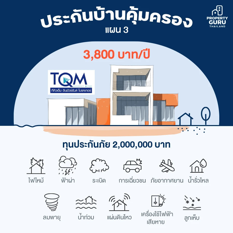 3. TQM ประกันบ้านคุ้มครอง แผน 3 ราคา 3,800 บาท/ปี