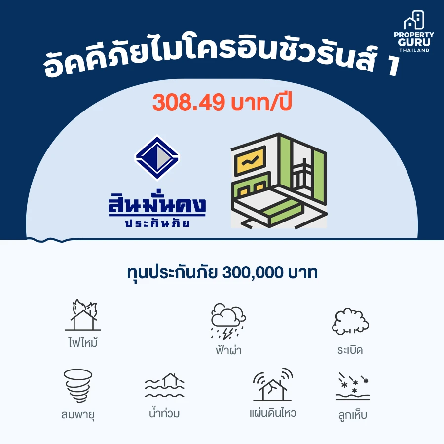 1. สินมั่นคง อัคคีภัยไมโครอินชัวรันส์ 1 ราคา 308.49 บาท/ปี