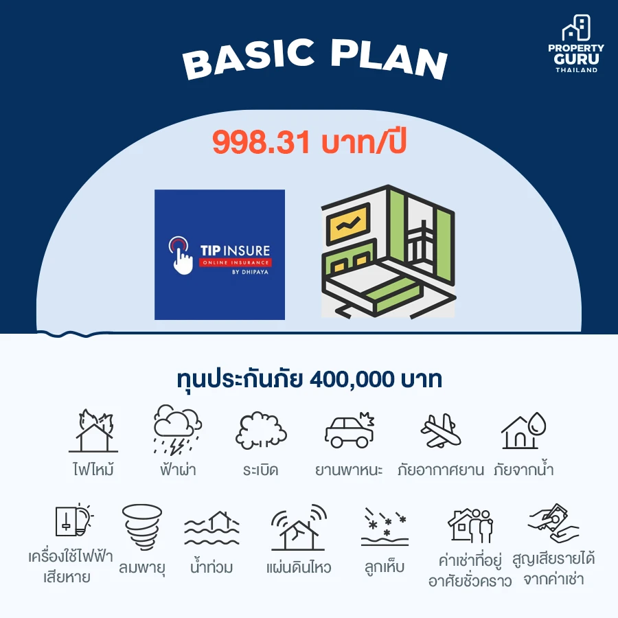 *ราคาขึ้นอยู่กับลักษณะโครงสร้างอสังหาริมทรัพย์ ความสูง และขนาด และการรับผลประโยชน์ในแต่ละกรมธรรม์มีความแตกต่างกัน ควรศึกษารายละเอียดให้ดีก่อนการตัดสินใจซื้อประกันบ้านและประกันคอนโด