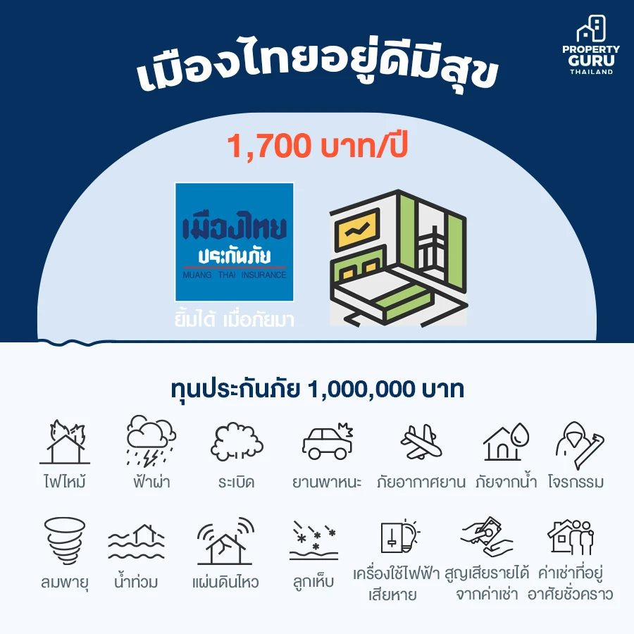 รายละเอียดเพิ่มเติม >> https://www.muangthaiinsurance.com/th/pagecontent/Fire-Insurance-for-Home-1