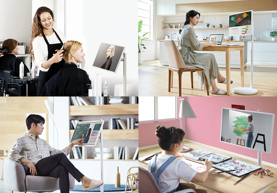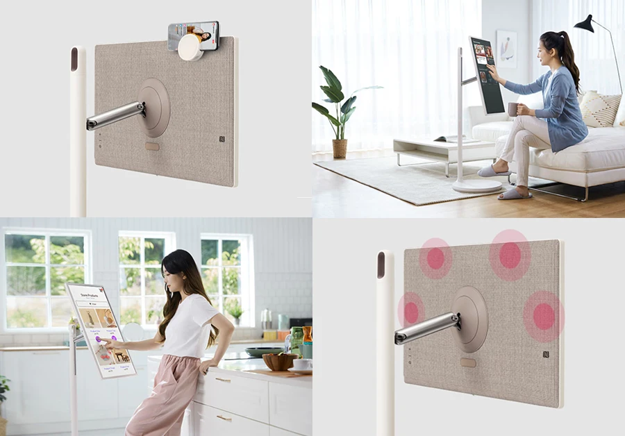 | แบรนด์ : LG ขนาดหน้าจอ : 27 นิ้ว จุดเด่น : มีขาตั้ง เป็นล้อเลื่อนได้ ตัวเครื่องดีไซน์มินิมอล วางไว้ตรงไหนก็สวยละมุนไปหมด หน้าจอเป็นทัชสกรีน ปรับหมุนองศาได้ตามใจ ความละเอียด Full HD แบ็กไลต์ LED เชื่อมต่อมือถือได้ ดูแอปต่างๆได้ ผ่าน WebOS ใช้งานไร้สาย (แบตเตอรี่) ได้นาน 3 ชั่วโมง ราคา : ประมาณ 30,xxx บาท | แบรนด์ : Samsung ขนาดหน้าจอ : 43 นิ้ว จุดเด่น : ออกแบบโดยดีไซเนอร์ระดับโลก ขาตั้งลอยตัว ถอดเก็บได้ ซ่อนสายไฟสบายตา มี NFC เชื่อมต่อได้ทันที บนทีวีวางของตกแต่งได้ตามใจชอบ จอภาพ QLED 4K (3,840x2,160) เชื่อมต่อได้ทั้ง WIFI & WIFI Direct, Blurtooth Low Energy ราคา : ประมาณ 29,9xx บาท |