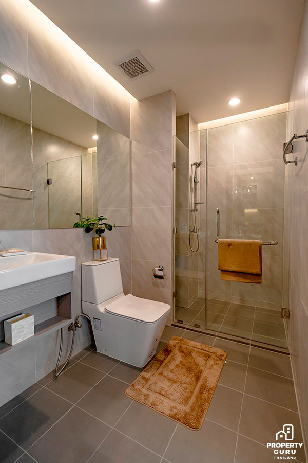 อีกหนึ่งพื้นที่ที่ควรดูแลเป็นพิเศษ โดยเฉพาะบริเวณโถสุขภัณฑ์ เนื่องจากมีผลการวิจัยบ่งชี้แล้วว่า ถ้าผู้ติดเชื้อปัสสาวะ หรืออุจจาระ ออกมา เชื้อบางส่วนจะติดออกมาด้วย ดังนั้นหลังทำธุระส่วนตัวเสร็จก่อนจะกดน้ำให้ปิดฝาชักโครกก่อนทุกครั้ง เพื่อเป็นการป้องกันไม่ให้ละอองฟุ้งกระจาย ควรทำความสะอาดพื้นห้องน้ำด้วยผลิตภัณฑ์สำหรับทำความสะอาดห้องน้ำ น้ำยาฟอกขาวเพื่อฆ่าเชื้อ แต่ไม่ควรใช้น้ำส้มสายชู และควรเช็ดฝาปิดชักโครก ที่กดชักโครก ก๊อกน้ำ อ่างล้างหน้า และลูกบิดประตูบ่อยๆ