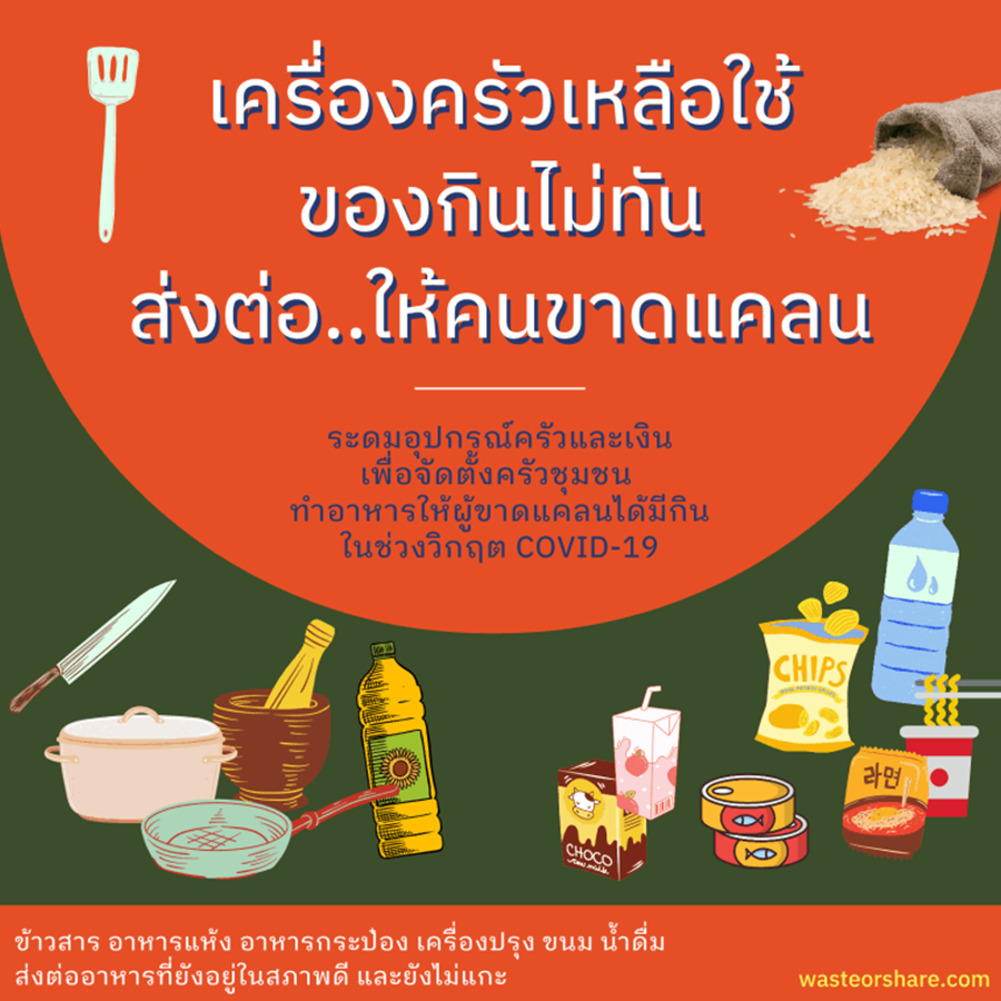 ส่งต่อ "เครื่องครัวเหลือใช้ ของกินไม่ทัน" ให้โครงการครัวรักษ์อาหาร