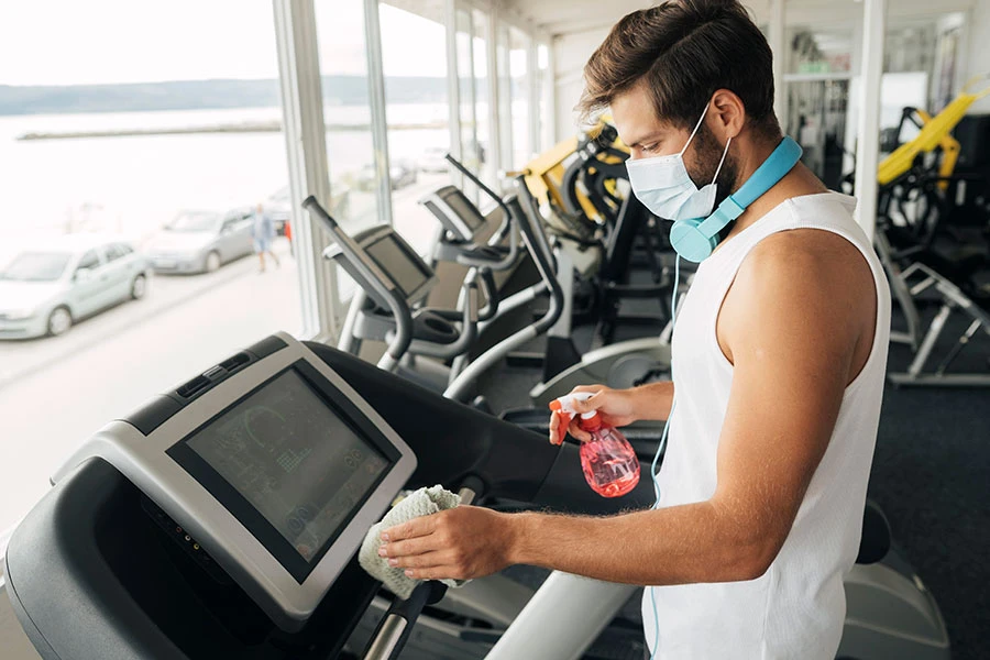 หากมีผู้ป่วยติดเชื้อออกกำลังกายโดยไม่สวมใส่หน้ากาก มีการพูดคุย หรือไอ จามออกมา โดยที่ตัวเราเองก็ไม่สวมใส่หน้ากากด้วยเช่นกัน แบบนี้ถือว่ามีความเสี่ยงในการรับเชื่อโรคเข้าสู่ร่างกายได้สูง