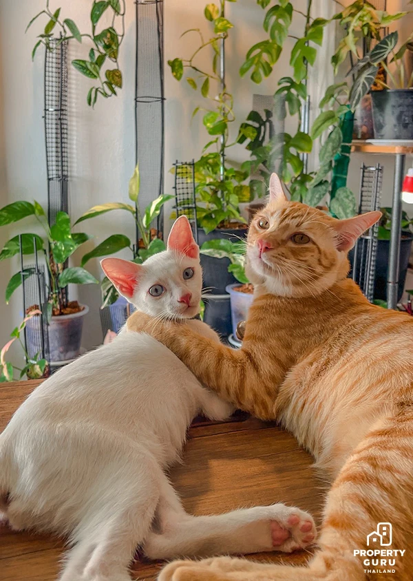 "คนที่ติดตามผมจะรู้อยู่แล้วว่าผมเลี้ยงแมว 2 ตัว แล้วก็เป็นคำถามยอดฮิตมากว่ามีวิธีจัดการศัตรูพืชที่เป็นแมวยังไง ผมเริ่มเลี้ยงต้นไม้ก่อนจะเลี้ยงแมว เราเลี้ยงน้องให้ชินกับสิ่งที่เรามี ก็มีบ้างครับที่กัดแทะใบ เล่นดิน มีสอนแอบตีบ้างพูดคุยเหมือนคนบ้าบ้างครับ (หัวเราะ) จนตอนนี้ก็ชินไม่กล้าเล่นแล้วครับ"