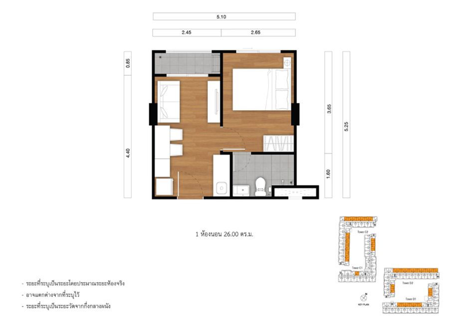 อาคาร D ชั้น 8 โครงการมีแบบห้องให้เลือกเยอะมากค่ะ สามารถดูทั้งหมดได้ที่นี่ สำหรับวันนี้จะยกตัวอย่างห้องแบบ 1 ห้องนอน ขนาด 26.00 ตร.ม. มาให้ชมกัน