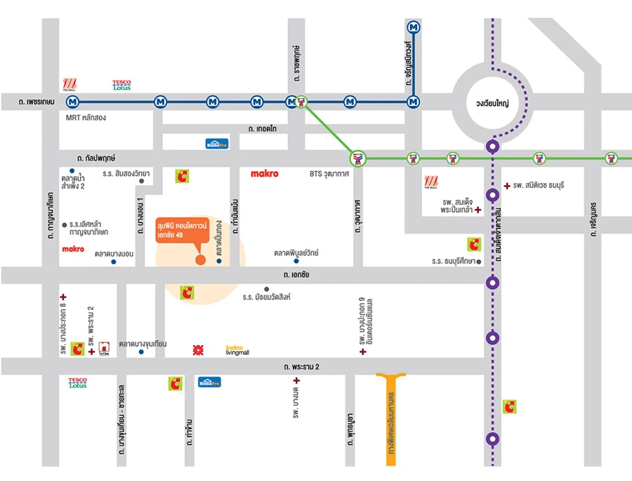 แผนที่โครงการ ลุมพินี คอนโดทาวน์ เอกชัย 48 พิกัดโครงการ 13.680967653123464, 100.43749046208744