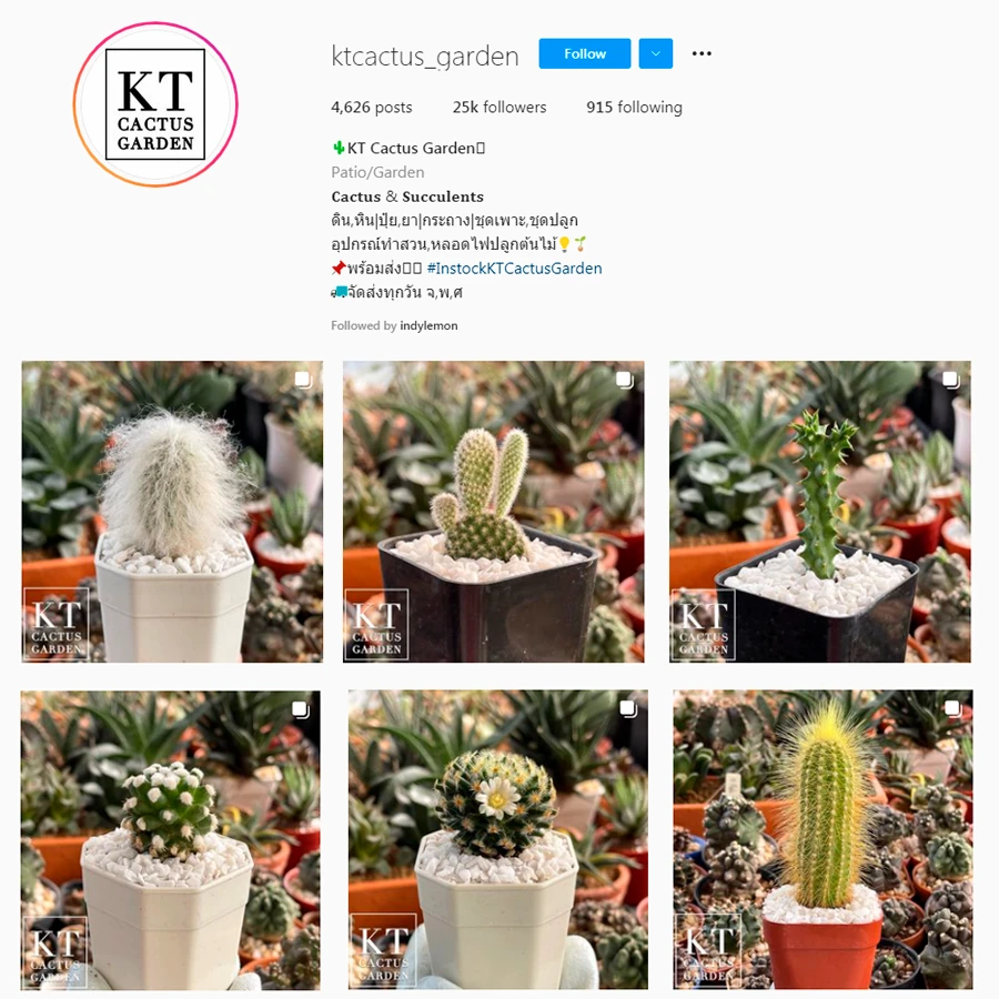 สำหรับสายแคคตัสก็ไม่พลาดส่องร้านนี้ ktcactus_garden รับรองต้องถูกใจ เพราะที่ร้านมีแคคตัสให้เลือกหลากหลายพันธุ์ เลี้ยงง่าย พร้อมอุปกรณ์ทำสวน ดิน หิน ปุ๋ยเร่งดอก ยา กระถางน่ารักๆ รวมไปถึงชุดปลูก ร้านนี้มีหมดเรียกว่ามีขายครบจบในร้านเดียว พร้อมให้เอาไปตั้งในห้อง หรือเพิ่มพื้นที่สีเขียวบนโต๊ะทำงานได้ได้ทันที ในราคาสบายกระเป๋า ตัวอย่างราคาต้นไม้ อาทิ