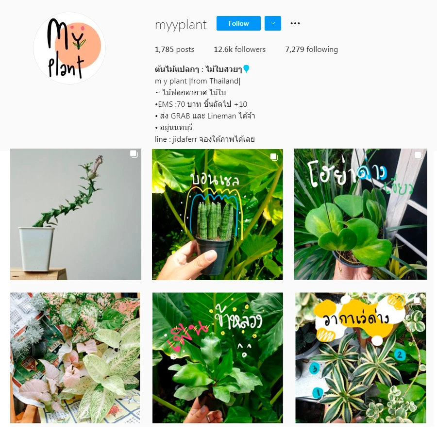 ร้าน myyplant ขายต้นไม้แปลกๆ ต้นไม้ฟอกอากาศ ต้นไม้จิ๋ว แคคตัส และ แถมยังบอกวิธีการดูแลให้ด้วย ต้นได้ชอบน้ำมากน้ำน้อย ชอบแดดไม่ชอบแดด ทางร้านแนะนำไว้ให้หมด ราคามีตั้งแต่หลักสิบไปจนถึงหลักพัน เช่น