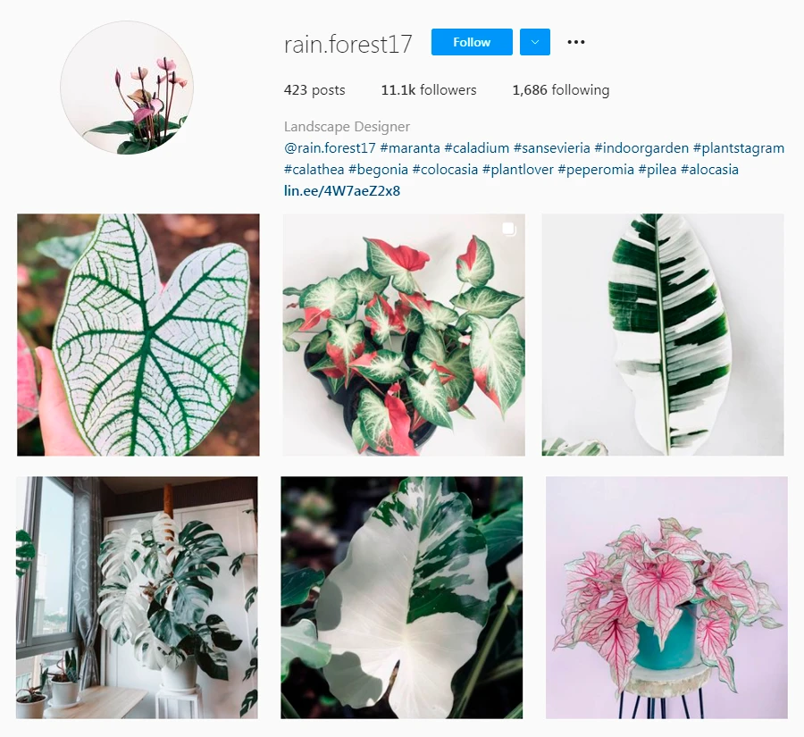 ยากได้ต้นไม้ต้นไม้ฟอกอากาศฮิปๆ ไว้ฟอกอากาศ หรือไม้ใบด่างสวยๆ ต้องร้านนี้ rain.forest17 ร้านขายต้นไม้จากจังหวัดเชียงใหม่ หรือหากอยากได้ต้นไม้ที่ปลูกในห้องได้ รวมไปถึงต้นไม้ขนาดใหญ่อย่าง กล้วยด่างปาปัว กล้วยด่างฟอลิดา ร้านนี้ก็ยังมีให้เลือกอีกหลากหลายต้น แถมยังมีกระถางเซรามิก และกระถางดินเผาเก่ๆ น่ารักๆ สำหรับใส่ต้นไม้ขายด้วย ราคาก็มีหลายระดับตั้งแต่หลักร้อยไปจนถึงหลักหมื่น ขึ้นอยู่กับความสวยงาม และความหายากของแต่ละต้น ตัวอย่างราคาต้นไม้ อาทิ