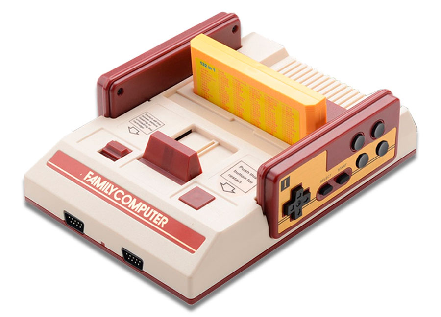 เครื่องเล่นเกมสีขาวสลับสีแดงในตำนานที่เด็กๆ เกือบทุกบ้านต้องมี ซึ่งต้องเล่นคู่กับตลับเกมที่มีให้เลือกมากมายหลายรูปแบบ อาทิ Mario, Contra, Pacman, Duck Hunt , Balloon Fighter