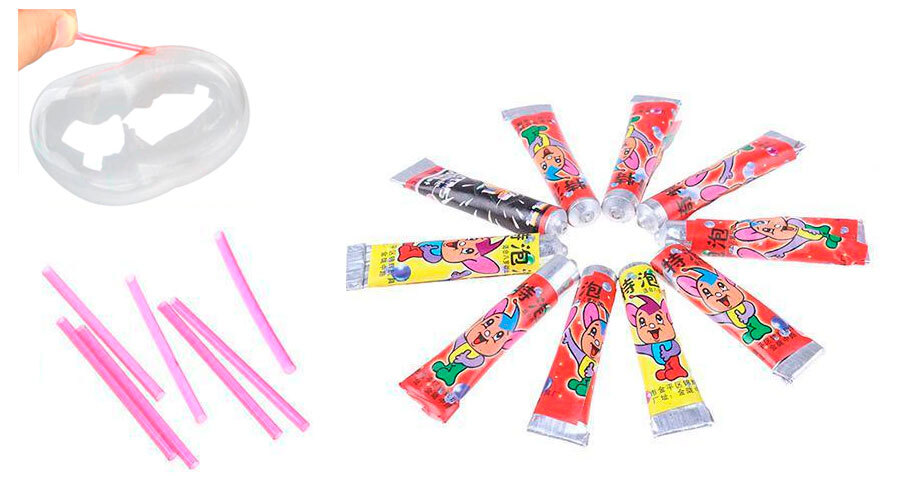 ลูกโป่งวิทยาศาสตร์ที่ไม่ว่าใครก็ต้องเคยเป่า อีกหนึ่งของเล่นสุดฮิตในยุคนั้น ลักษณะจะเป็นเจลใสๆ เหนียวๆ ขายมาพร้อมกับหลอดเล็กๆ สำหรับให้เด็กๆ ไว้เป่า แต่บางทีมันก็ไม่ได้เป่าง่ายอย่างที่คิด มีรอยรั่วให้ต้องอุดอยู่เสมอๆ แต่ปัจจุบันมีคำเตีอนว่าเป็นสินค้าอันตรายต่อสุขภาพ หากเด็กๆ จะเล่นก็ต้องใช้ความระมัดระวังด้วยนะคะ