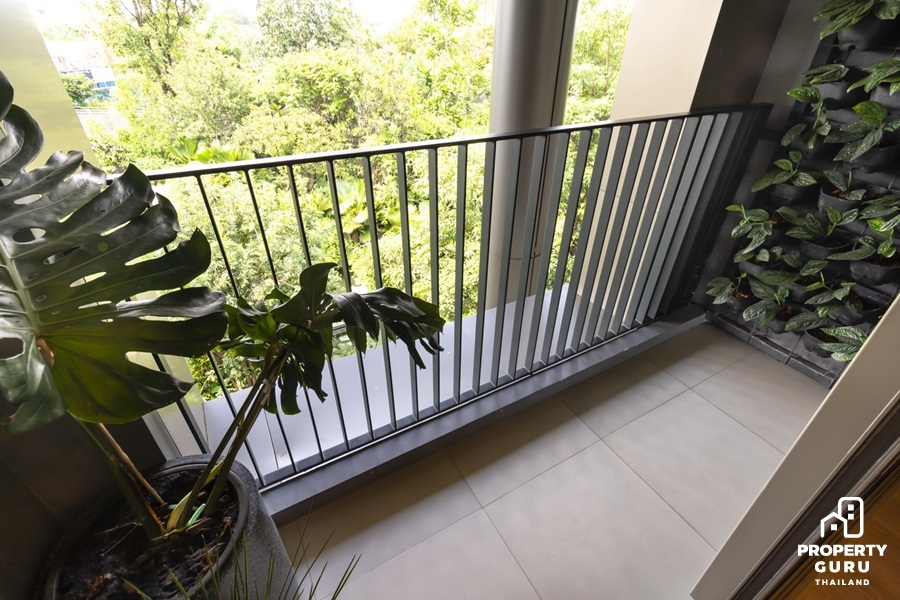 ระเบียงทุกห้องของที่นี่จะไม่มีคอมเพรสเซอร์แอร์ ทำให้ระเบียงไม่ร้อน บวกกับพื้นที่ระเบียงที่กว้าง 1 เมตร จึงสามารถใช้งานได้อย่างเต็มที่ หรือจะออกแบบพื้นที่ระเบียงเป็น Vertical Garden แบบนี้ก็ได้