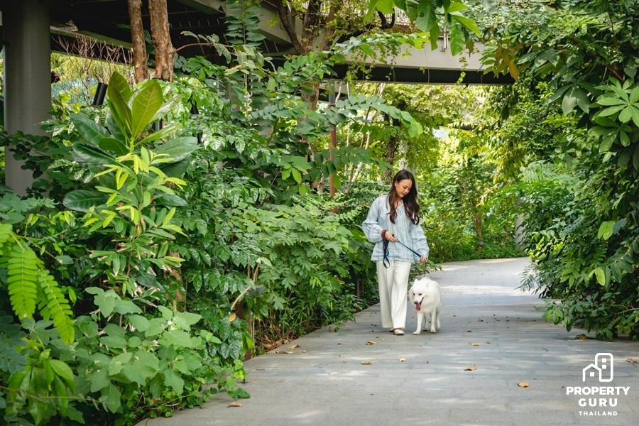 ทางเดินเล่นภายในสวนของ The Forestias ให้สัตว์เลี้ยงมาเดินเล่นออกกำลังกายเบาๆ เพื่อให้น้องไม่เหงา และได้สุขภาพที่แข็งแรง