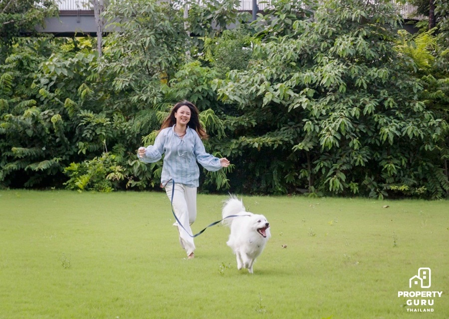 Event Lawn ลานกิจกรรมสนามหญ้าขนาดใหญ่ ที่เป็นพื้นที่ส่วนกลางของ The Forestias สำหรับพาน้องหมาน้องแมวมาปล่อยพลังได้อย่างเต็มที่