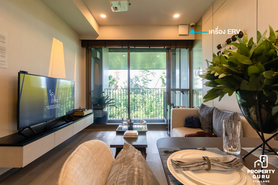 ภายในห้องนั่งเล่นมีเครื่อง ERV เป็นเครื่องแลกเปลี่ยนเพื่อนำอากาศบริสุทธิ์หมุนเวียนเข้ามาสู่ภายในห้องพักอาศัย ซึ่งจะทำงานคู่กับเครื่อง IAQ