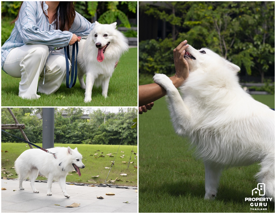"น้องเต้าหู้" น้องหมาสีขาวขนปุยที่กำลังวิ่งเล่นอย่างสนุกสนานในลาน Event Lawn
