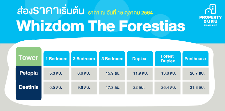 สำหรับโครงการ Whizdom The Forestias เปิดให้เข้าเยี่ยมชมห้องตัวอย่าง พร้อมให้สัมผัสโครงการแห่งอนาคตที่จะมอบอากาศบริสุทธิ์แบบใกล้ชิดธรรมชาติบนผืนป่ากว่า 30 ได้แล้ววันนี้ กับโปรโมชั่นส่วนลดพิเศษ 1 Bedroom ส่วนลด 100,000 บาท, 2 Bedroom ส่วนลด 150,000 บาท และ 3 Bedroom ส่วนลด 250,000 บาท พิเศษสำหรับตึก Petopia ฟรีค่าส่วนกลาง 1 ปี และส่วนลดพิเศษ ณ วันโอน