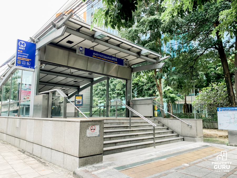 ระยะเดินทางโครงการไปยังสถานีรถไฟฟ้า MRT สถานีศูนย์ฯ สิริกิติ์ อยู่ในระยะประมาณ 450 เมตร เป็นระยะที่เดินได้กำลังดี ไม่ถึงกับต้องนั่งวินไปกลับคอนโด ใกล้สุดคือ ทางออกที่ 1