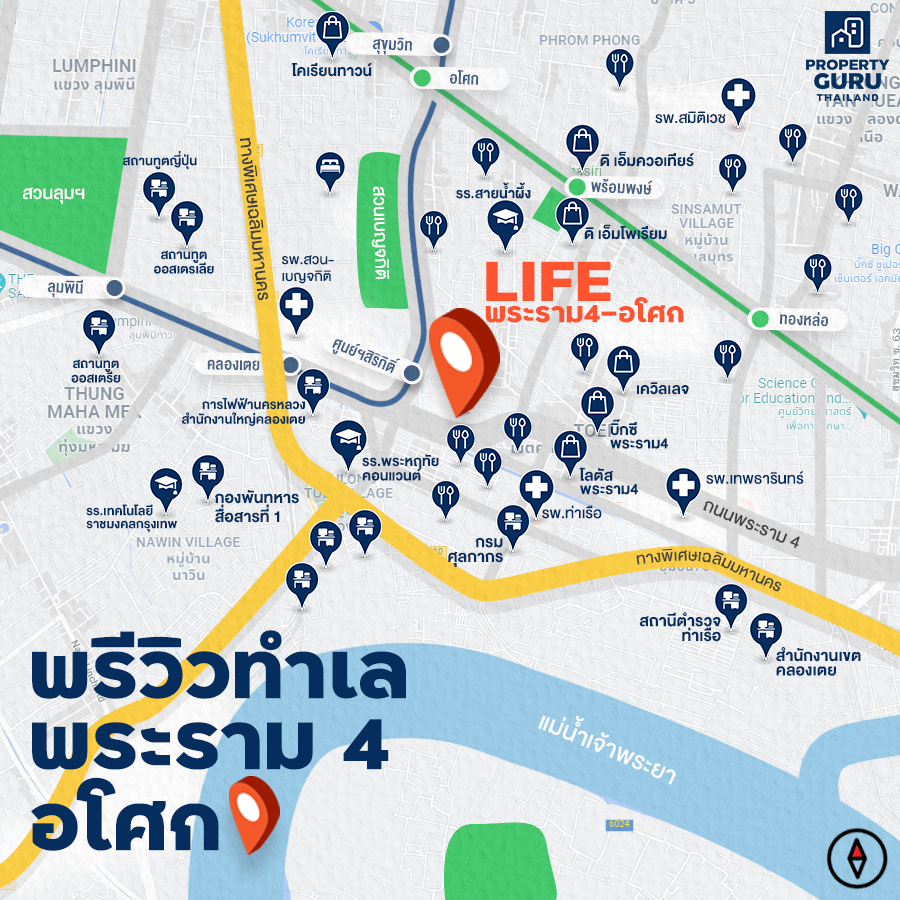 เชื่อมต่อมาที่ทำเล พระราม 4 โซนนี้ก็ถือว่า เป็นแหล่งรวมอาคารสำนักงานต่างๆ เป็นแหล่งชุมชนเก่าแก่ มีคอมมูนิตี้มอลล์เล็กๆ ห้างสรรพสินค้ามีทั้ง บิ๊กซี โลตัส กระจายตัวอยู่หลายจุดเลย ซึ่งก็ช่วยตอบสนองความต้องการของผู้คนที่อาศัยอยู่และเดินทางเข้ามาทำงานในย่านนี้ได้เป็นอย่างดี LIFE พระราม 4 - อโศก ตั้งอยู่ใกล้โซนพระราม 4 มากกว่าถือว่าได้ขยับออกมาอยู่ตรงนี้ค่อนข้างโล่งกว่าโซนอโศก แต่ก็ยังเชื่อมต่อกันได้ง่ายไม่ว่าจะใช้รถยนต์หรือรถไฟฟ้า