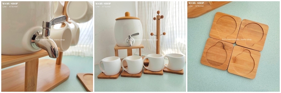 เติมฟีลเกาหลีให้กับห้องครัวเข้าไปอีกด้วยชุดชงกาแฟ หรือชุดโถสำหรับใส่น้ำสไตล์มินิมอล ที่ออกแบบมาได้เข้ากั๊นเข้ากันกับชุดเครื่องปรุงอาหาร ในชุดประกอบด้วย โถใส่น้ำที่มาพร้อมฝาปิด แก้วเซรามิค 4 ใบ จานรองแก้วไม่ไผ่ 4 จาน และแท่นไม้ไผ่สำหรับวางโถน้ำและแขวนแก้ว