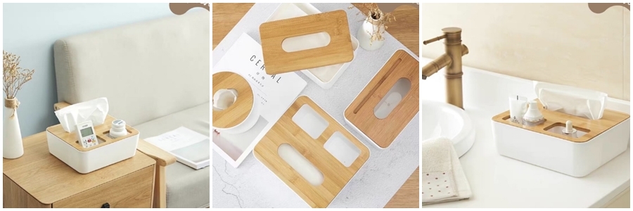 กล่องใส่กระดาษทิชชู่ดีไซน์สวย ฝาปิดทำจากไม้โอ็ค และพลาสติกคุณภาพดี เรียบง่ายได้ฟิลธรรมชาติ ที่นอกจากจะใส่ทิชชู่ได้แล้วยังเป็นของแต่งบ้านไปในตัว บางรุ่นยังออกแบบให้มีช่องสำหรับวางของได้ด้วย