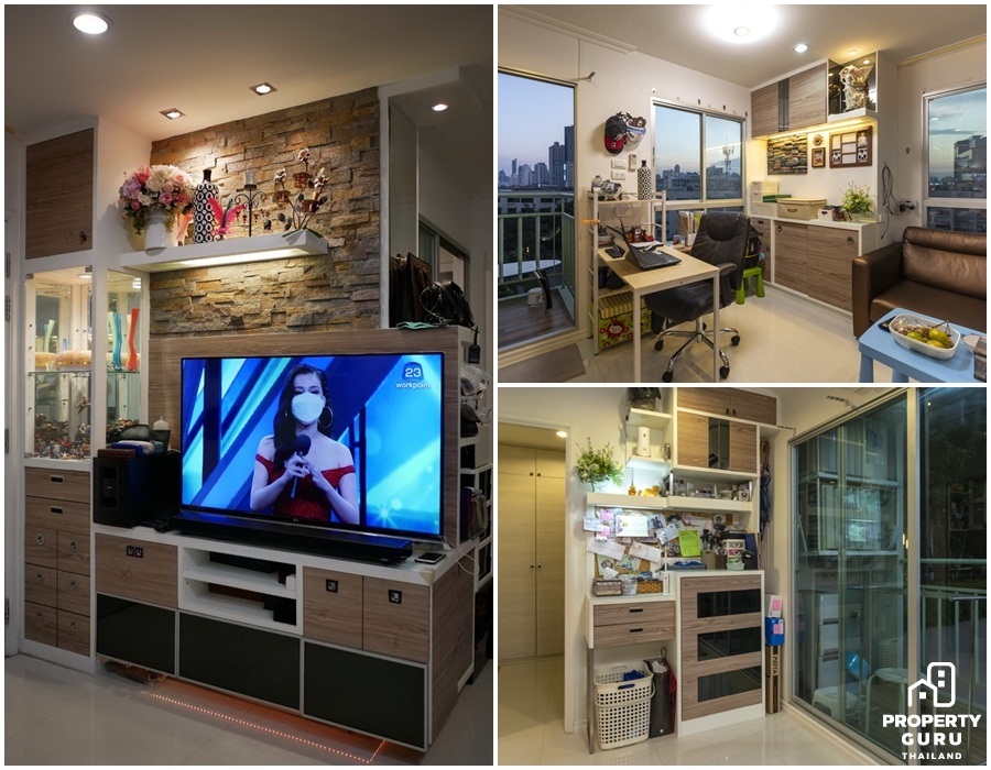 มองว่าห้องแบบ 1 ห้องนอน ขนาด 37.5 ตร.ม. ที่โครงการนี้เค้าค่อนข้างที่จะจัดออกมาเป็นสัดส่วนจึงไม่ได้ทำให้รู้สึกว่าเล็กเกินไปหรืออึดอัดอะไร ส่วนหนึ่งอาจเพราะเราไม่ได้เลี้ยงลูกอยู่กับบ้านทั้งวันตลอดเวลา เช้าก็ไปส่งลูก หลังจากนั้นก็ไปทำงาน จะใช้เวลาอยู่ในคอนโดก็เพียงแค่ช่วงเย็นๆ และวันหยุดเท่านั้น อย่างเวลาที่เราจะประชุม แต่ลูกอยากเล่นเกมส์กับเพื่อน เราก็ย้ายเข้ามาในห้องนอนก็ได้ เพราะห้องของเรากั้นแบ่งเป็นสัดส่วนชัดเจนอยู่แล้ว