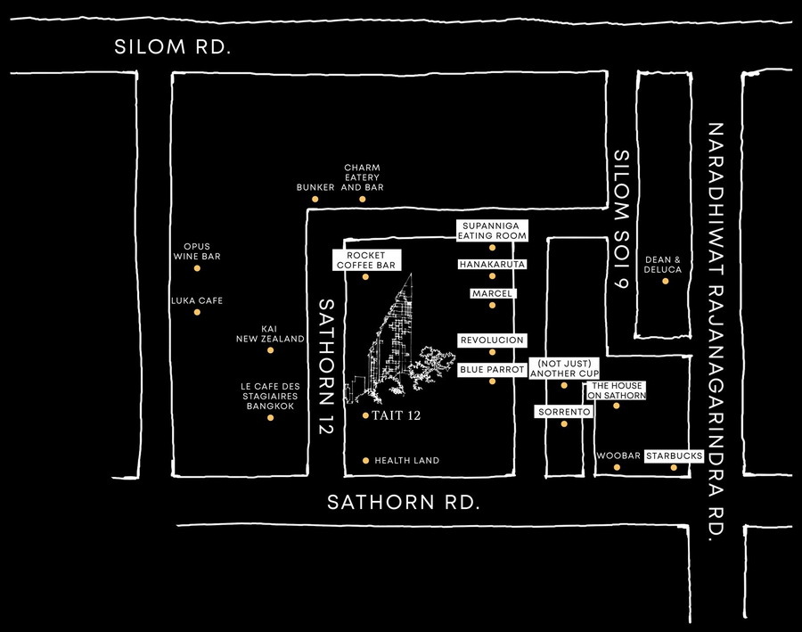 | Restaurant & Cafe LE CAFE DES STAGIAIRES BANGKOK 20 ม. KAI NEW ZEALAND 25 ม. ROCKET COFFEE BAR 85 ม. SORRENTO 380 ม. | CHARM EATERY AND BAR 140 ม. BLUE PARROT 400 เมตร NOT JUST ANOTHER CUP 400 เมตร SUPANNIGA EATING ROOM 350 ม. | HANAKARUTA 350 เมตร MARCEL 350 เมตร THE HOUSE ON SATHORN 450 เมตร OPUS WINE BAR 500 ม. LUKA CAFE 500 ม. |