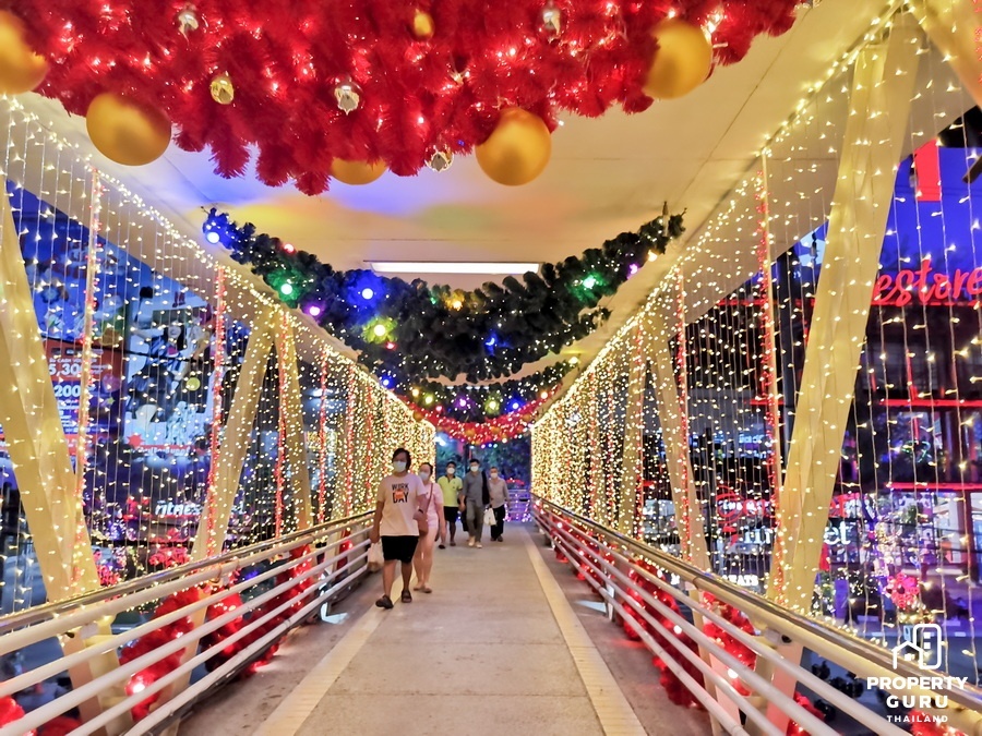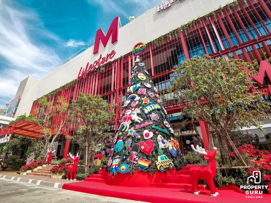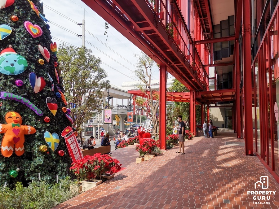 เรามาเริ่มต้นกันที่โซนด้านหน้าห้างก่อนเลยดีกว่า แค่เห็นด้านหน้าก็จึ้งแล้ว เพราะออกแบบมาในโทนสีแดงสดใส ที่มาพร้อมกับต้นคริสต์มาสขนาดใหญ่ให้ลูกค้าได้มากถ่ายรูปเก็บบรรยากาศความสุขในช่วงเทศกาลคริสต์มาส ยิ่งตอนกลางคืนที่ประดับตกแต่งด้วยไฟหลากสียิ่งสวย