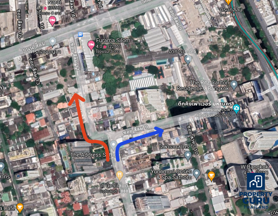 ส่วนทางซ้ายที่เป็นซอยสีลม 9 จะเป็นซอยเล็กๆ เข้า-ออกได้แค่มอเตอร์ไซค์ค่ะ